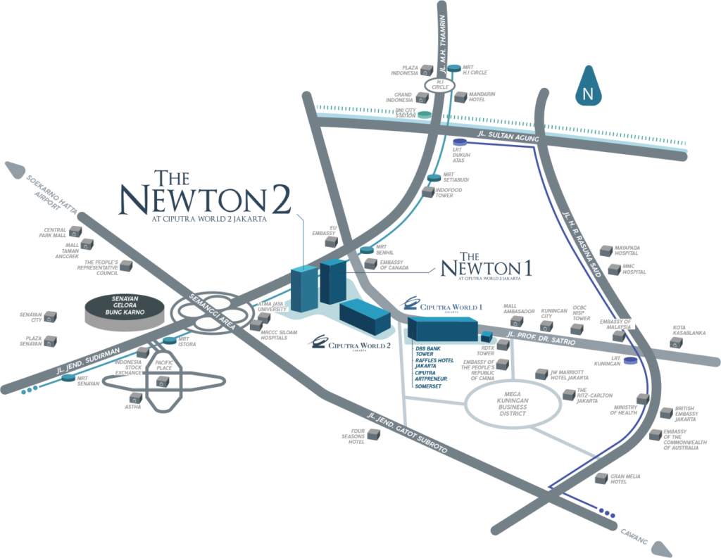 The Newton 2, merupakan masterpiece karya Ciputra group yang dibangun pada area seluas 4.6 hektar. Berlokasi strategis di segitiga emas Jakarta, apartemen ini menawarkan akses mudah ke berbagai pusat bisnis seperti Mega Kuningan dan Sudirman.